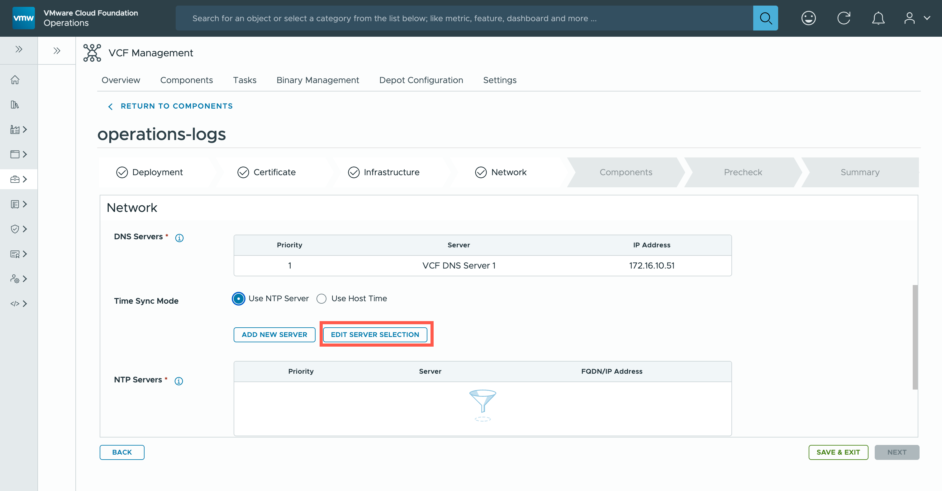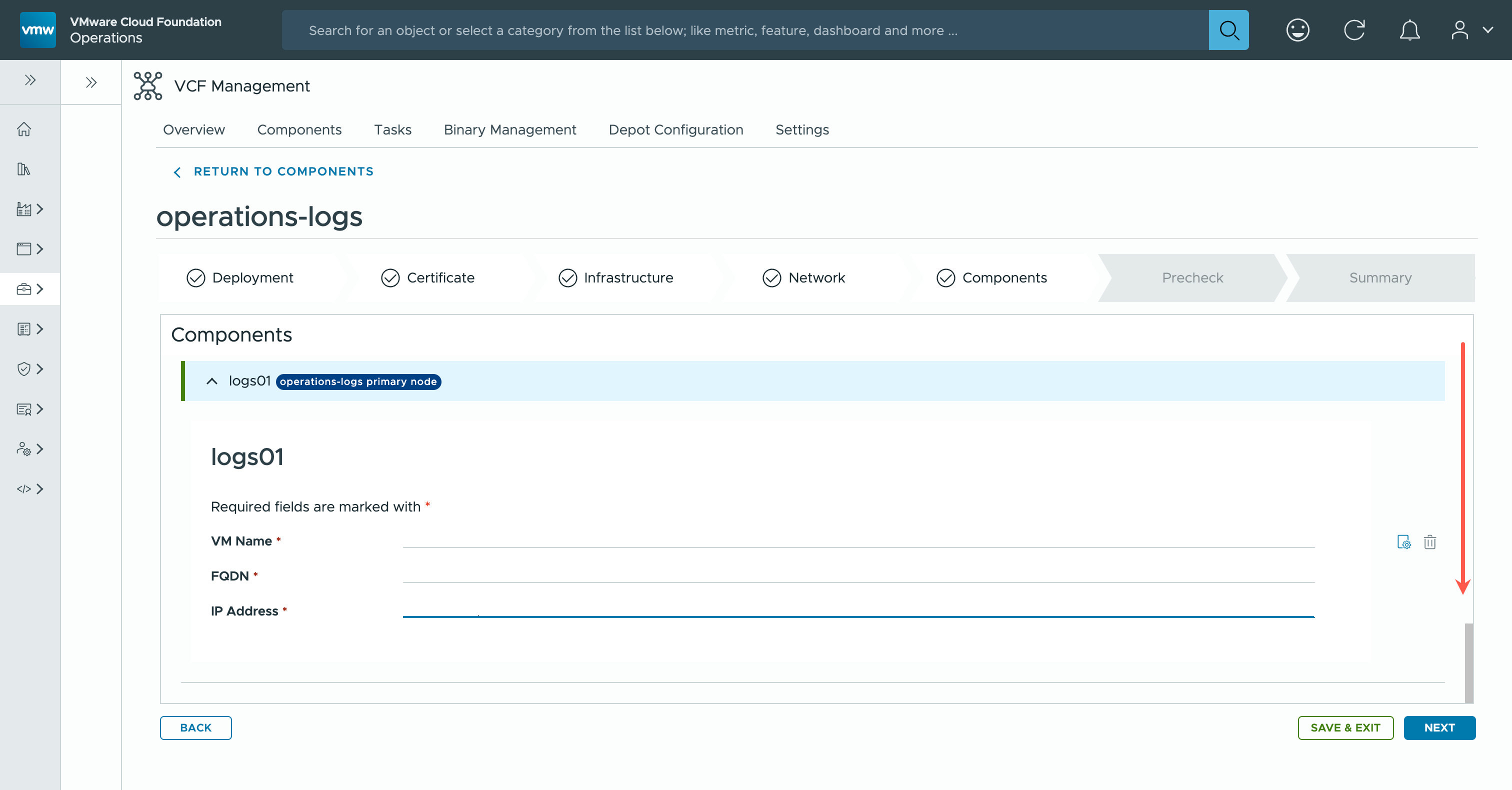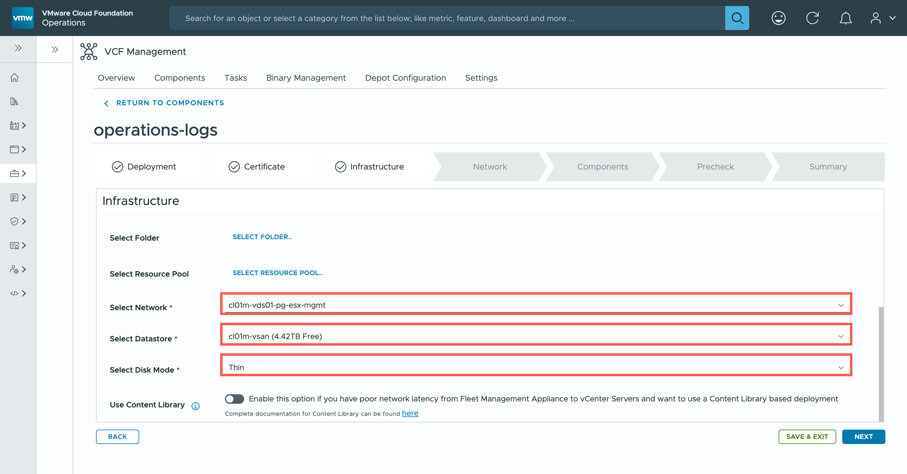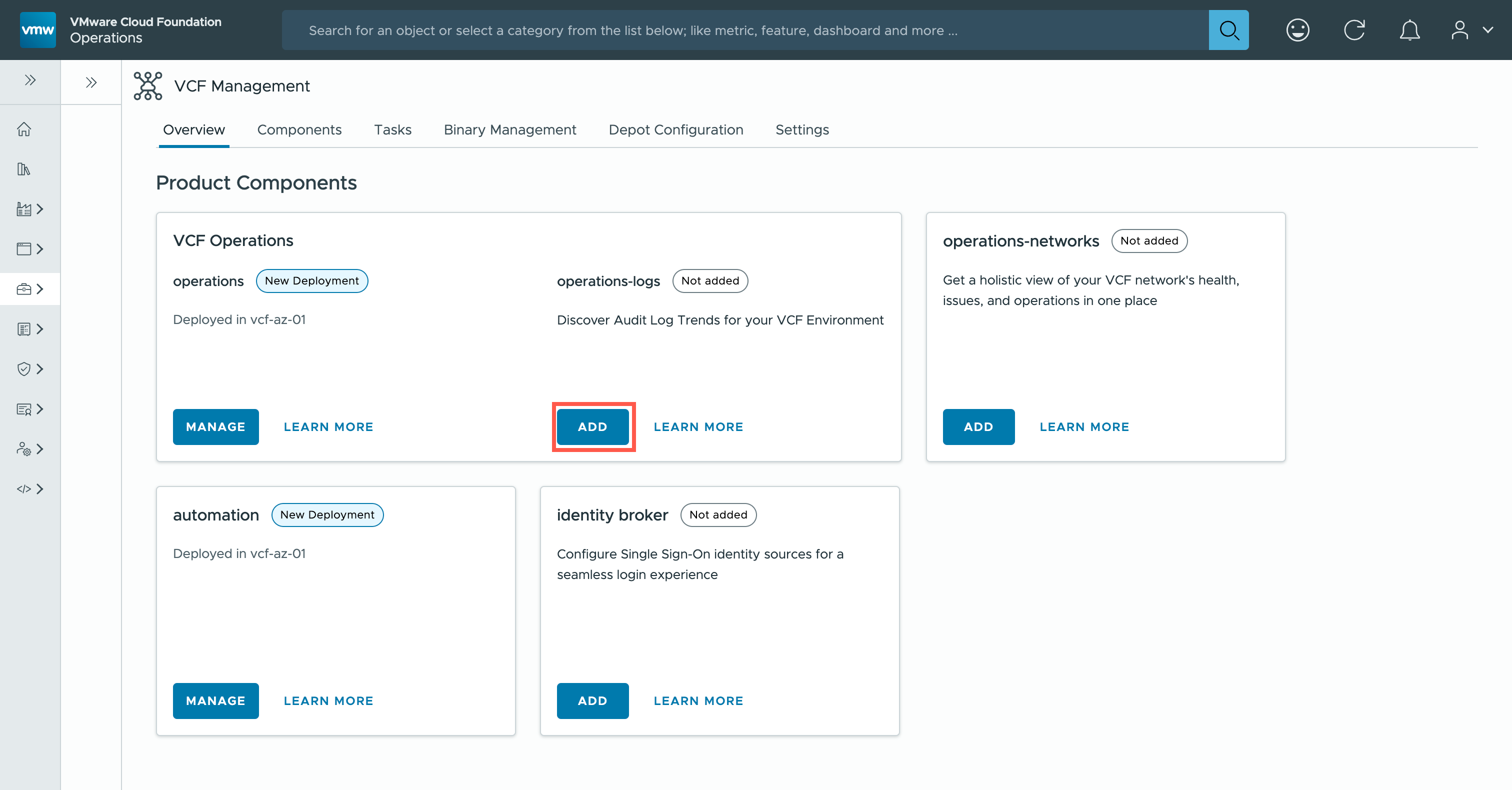 - Configured either an online or offline depot and downloaded the VCF Operations for logs install binaries.
